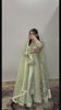 This traditional tea-green double layered paneled pishwas set features heavy resham, tilla and sequin embroidery accentuated with delicate sparkly hand-embellishment on the front bodice using pearls, nakshi, dabka, sequins, cut-dana and crystals. The outfit exhibits our signature chaand baali motifs and various Mughal floral and geometric patterns.