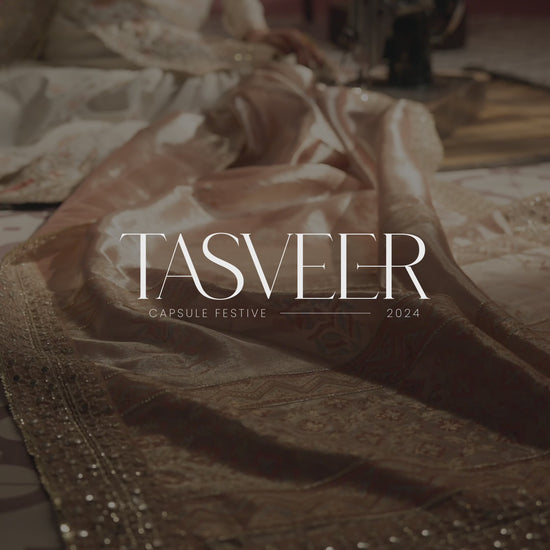 This stunning ivory ensemble features a rawsilk shirt with hand embellishment, mirror-work and rich embroidery. It is paired with an embroidered Gharara. A heavy mukaish work dupatta and a matching potli bag complete the look, adding a shimmering touch to your festive attire.