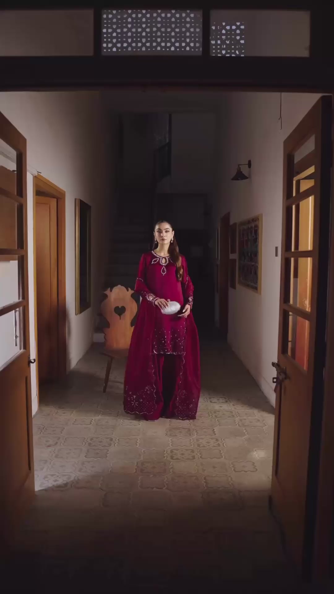 Paired with a matching farshi shalwar and a statement organza dupatta adorned with scalloped, sequin-embroidered borders, schiffli, and refined cutwork — ROSETTE is the epitome of luxury and timeless allure.