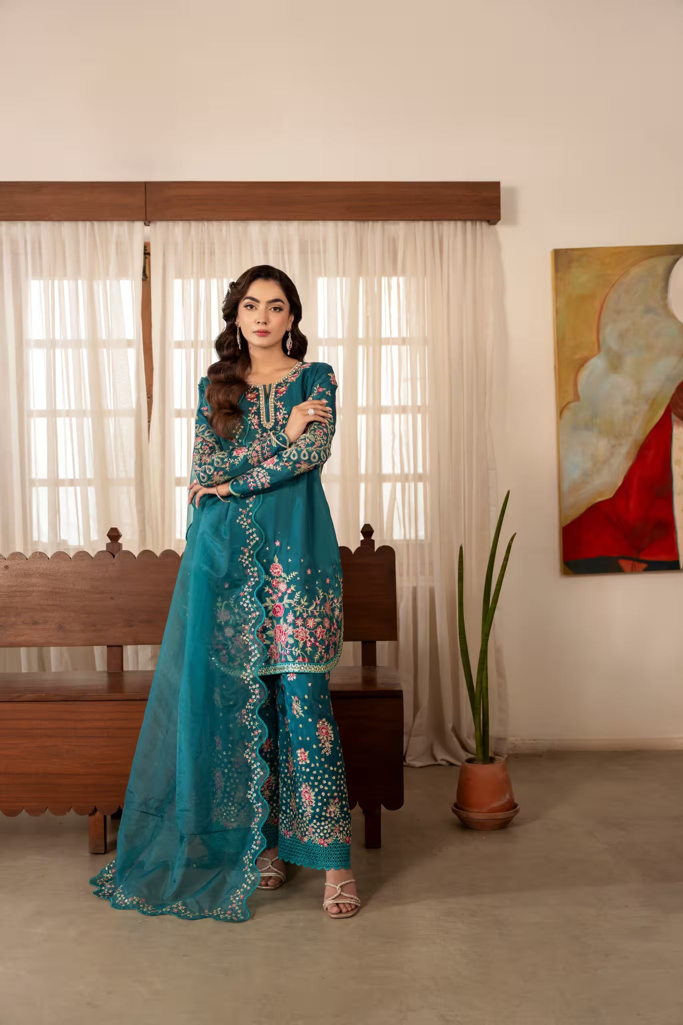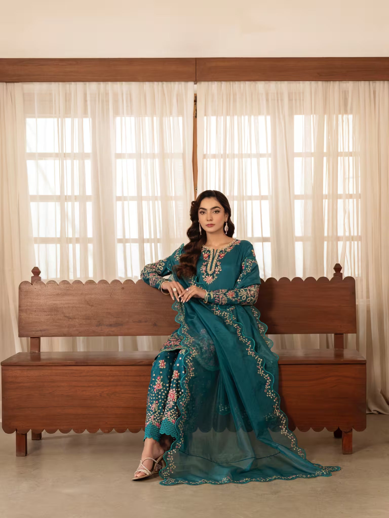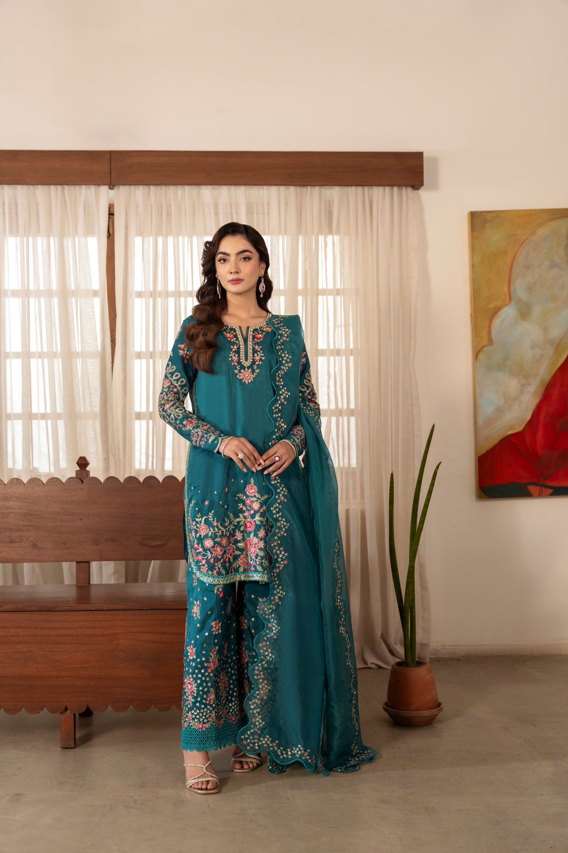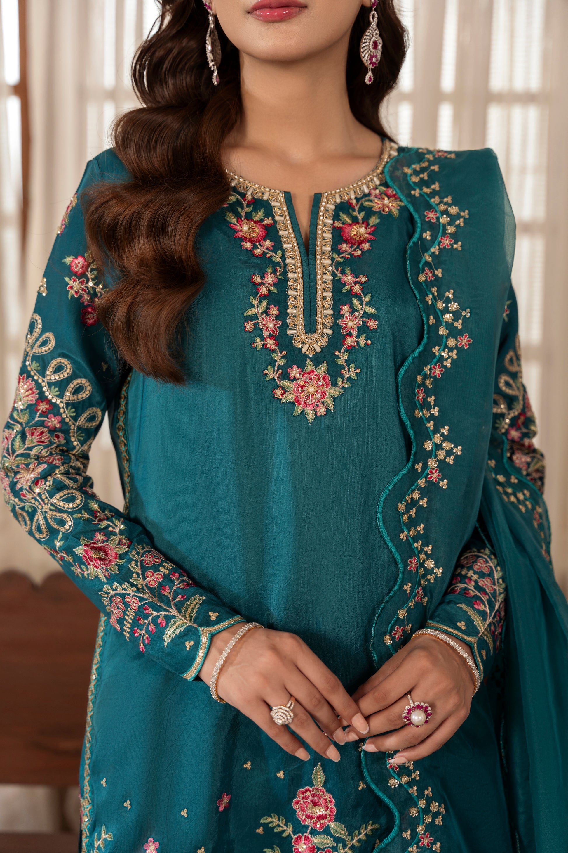 Completed with an organza dupatta featuring scalloped, sequin-embroidered borders — ZOE is a graceful ensemble that brings timeless charm and vibrant sophistication.